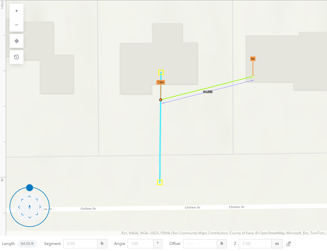 Snapping to an existing feature without entering a Z value in the footer will result in the new feature inheriting the existing feature’s Z value.