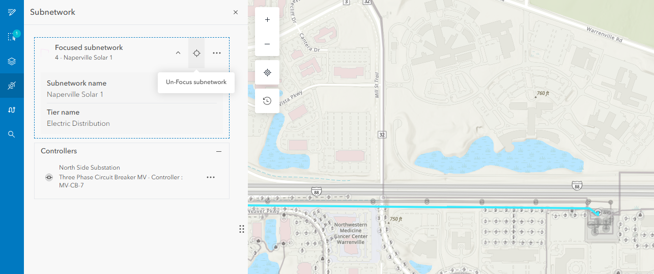 Focusing a Subnetwork causes Assets that are not within the subnetwork to display less prominantly in the map view.