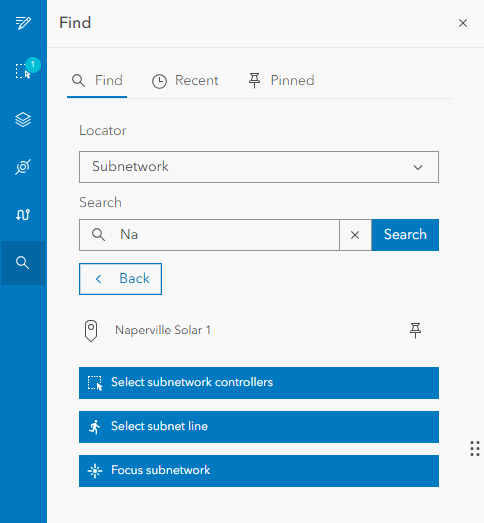 It is possible to configure a Find Panel locator that searches the tiers in your utility network for subnetworks. The locator can be configured to work against all or a subset of the network’s tiers.